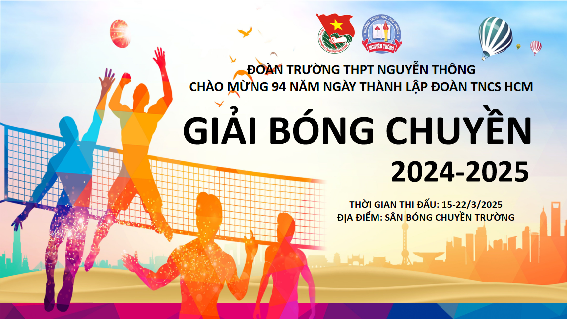 Sáng/Chiều ngày 15-16/3/2025, Ban chấp hành Đoàn trường THPT Nguyễn Thông tổ chức Giải bóng chuyền Nam-Nữ chào mừng 94 năm ngày thành lập Đoàn TNCS HCM. Giải bóng chuyền năm nay thu hút 59 đội bóng đến từ 44 chi đoàn. Đây là hoạt động ý nghĩa, giúp rèn luyện sức khỏe, nâng cao tinh thần đoàn kết và giao lưu học hỏi giữa các đoàn viên. Giải đấu đã diễn ra thành công tốt đẹp với sự tham gia nhiệt tình của các đội bóng và sự cổ vũ sôi động của đông đảo đoàn viên, thanh niên. Kết quả giải đấu: